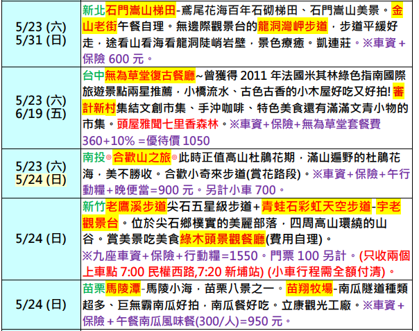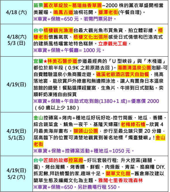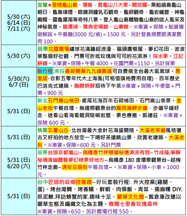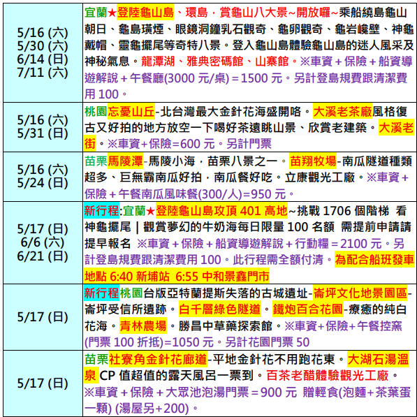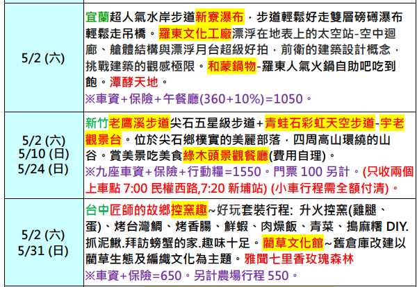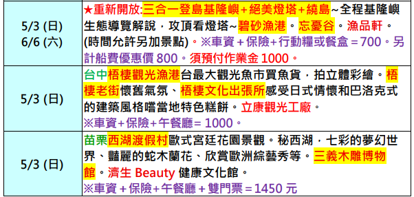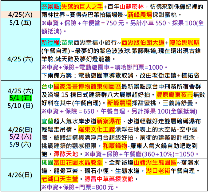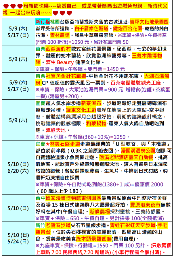 115年4月+5月連假+暑假預告多日遊行程表(圖片版)(4/10更新)