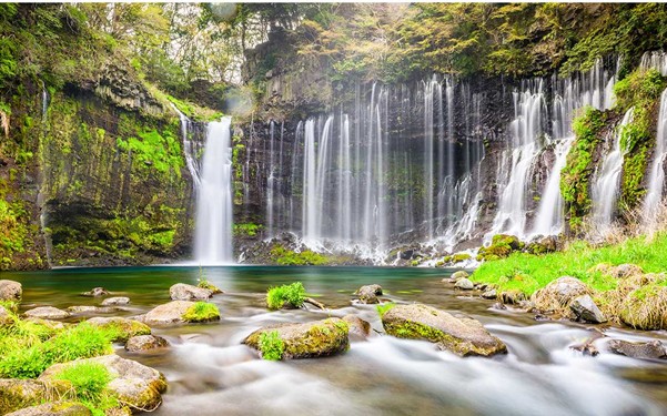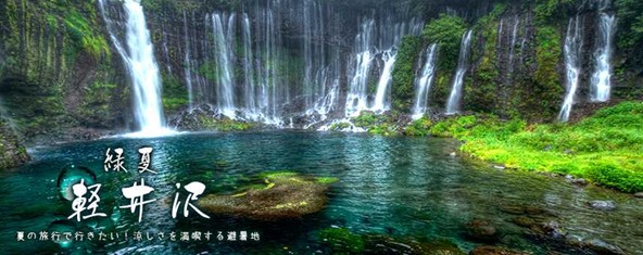 位於長野縣輕井澤,流水是從懸崖縫噴出,而不是常見的河流瀑布,遠望就像數百計的白絲由黑色的岩石縫流下,恰似一條條白絲輕輕飄落,這奇妙景觀被入選為聯合國世界文化遺產。