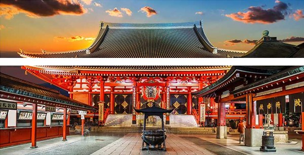 淺草寺的象徵是風雷神門,上面寫有“雷門”兩個字的大紅燈籠,這裡每天都有前來參拜的觀光客,終年熙熙攘攘,淺草寺門前是仲見世大道,是保存著傳統風情的“下町”。