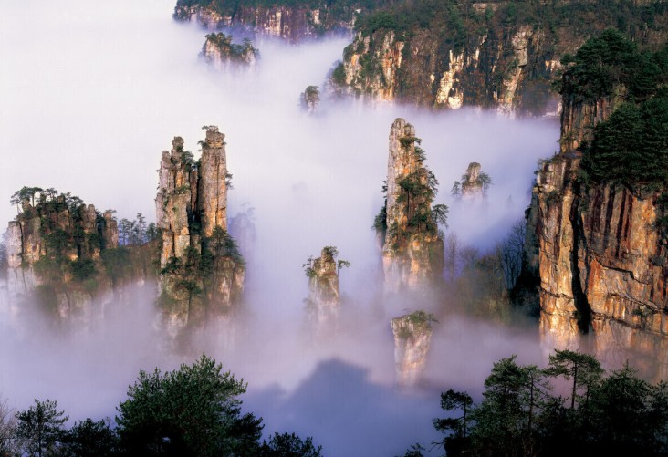 以其奇特的峰林地貌著稱,更是電影《阿凡達》中「哈利路亞山」取景地的靈感來源。