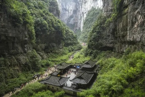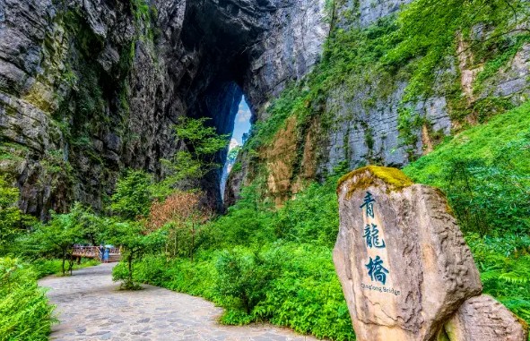 世界自然遺產,這裡擁有三座平均高度超過200公尺的天然石橋,橫跨在羊水河上,造就雄偉壯觀的喀斯特地貌。