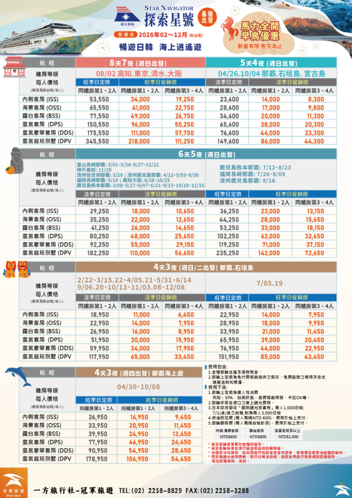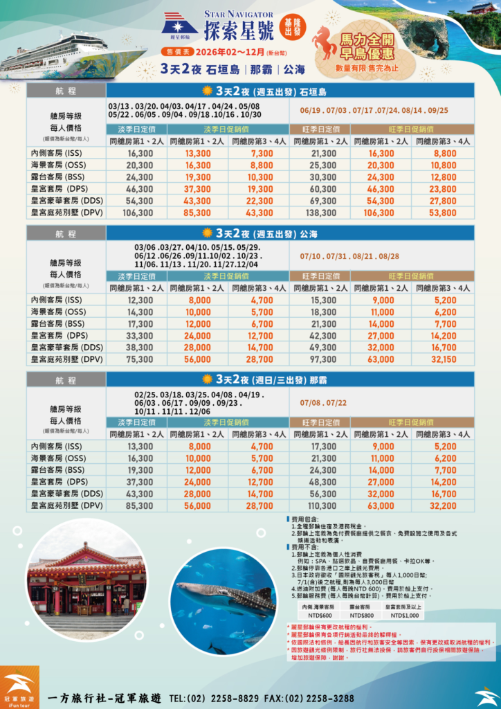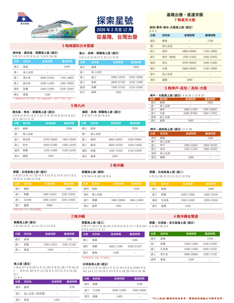 *麗星郵輪保有更改航程的權利。